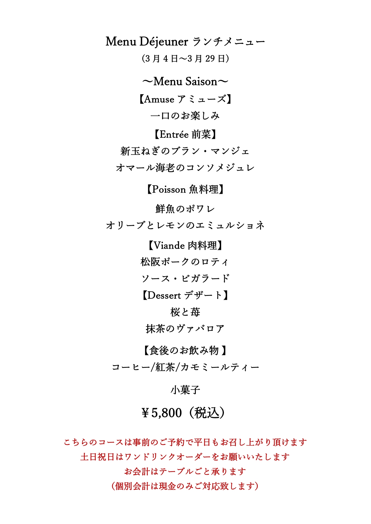 春の食材を取り入れ、軽やかさと旬の香りを楽しんでいただける内容になっています。